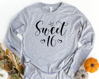 Sweet 16 Long Sleeve Shirt 16th Birthday Shirt Birthday Etsy